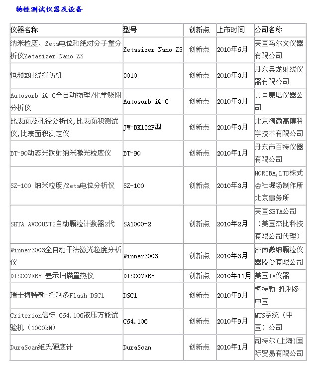 現(xiàn)公布“物性測試儀器、光學儀器”入圍名單,2010年度共申報了33臺物性測試儀器及設備,其中12臺入圍;共申報了26臺光學儀器及設備,其中6臺入圍;以下排名不分先后。