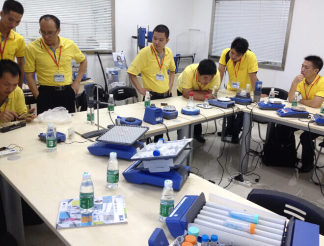 在儀器展示區(qū),IKA技術人員針對不同產品,就類別、原理、功能、技術參數、維修保養(yǎng)技巧,為我們銷售人員做了詳細解說。并給予現場演示操練時間。待廣州深華銷售人員徹底了解后,連連稱贊。兩家公司關系極其融洽。