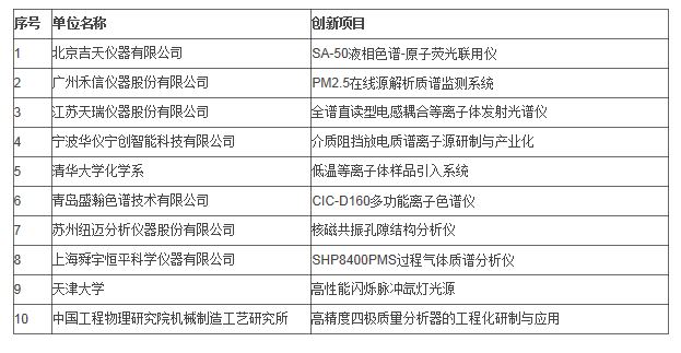 2017首屆“分析儀器創(chuàng)新獎(jiǎng)——?jiǎng)?chuàng)新成果獎(jiǎng)”入圍名單