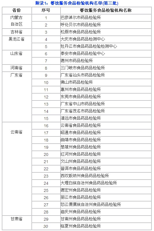 國家食藥監(jiān)局公布第三批餐飲食品檢驗(yàn)機(jī)構(gòu)名單