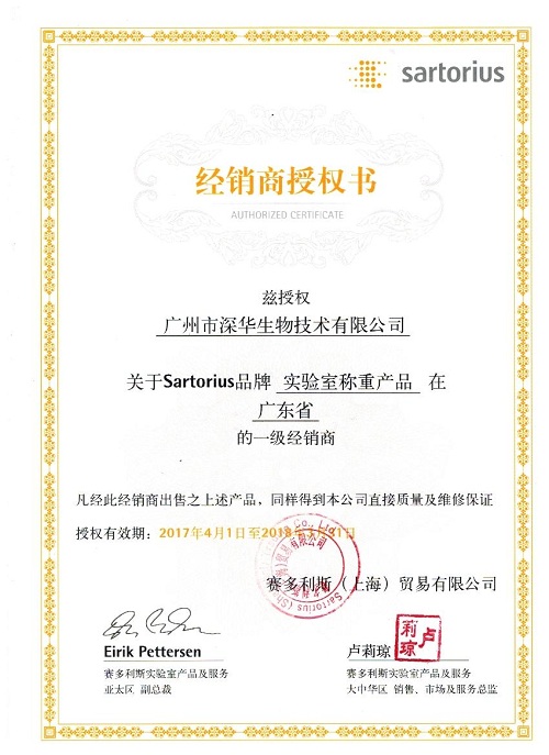 德國(guó)賽多利斯授權(quán)書 賽多利斯一級(jí)代理商 賽多利斯廣東辦事處 賽多利斯廣東售后維修站